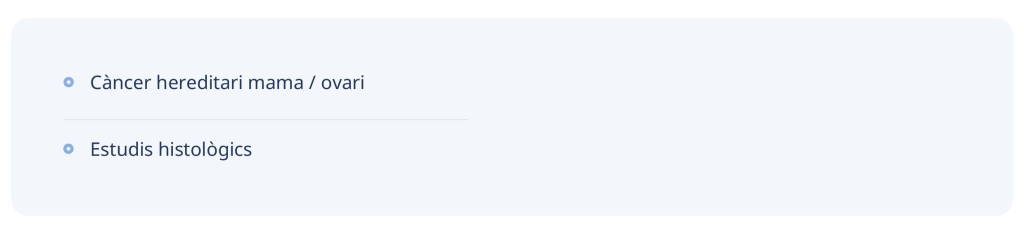 La prevenció hereditària se centra en la identificació primerenca de factors genètics i predisposicions que poden incrementar el risc de malalties greus en la dona. En Cerba, oferim proves que permeten realitzar un seguiment individualitzat de la pacient, així com intervenir de manera proactiva abans que es manifestin alteracions clíniques significatives.