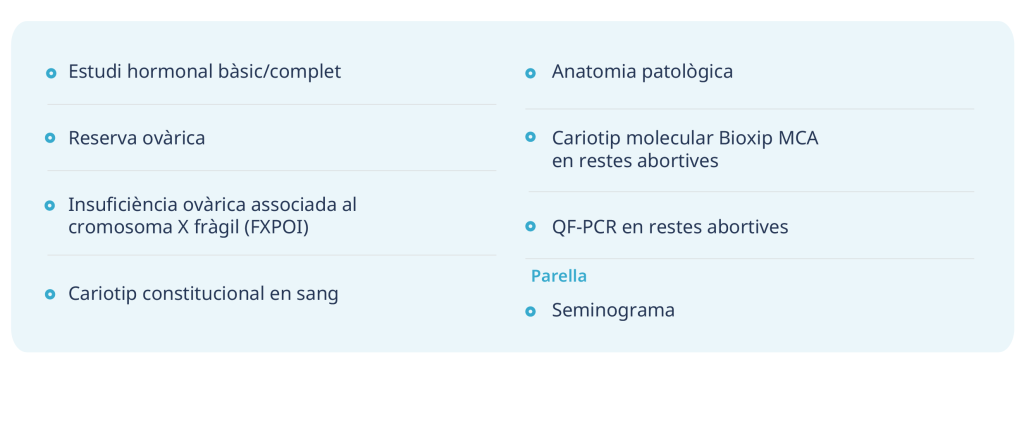 Un diagnòstic precís permet detectar alteracions que afecten la fertilitat i, davant pèrdues gestacionals, la genètica de les restes abortives orienta les decisions clíniques. Aquest enfocament integral combina proves hormonals, genètiques i d’anatomia patològica, oferint-te eines per a una intervenció personalitzada i basada en evidència.